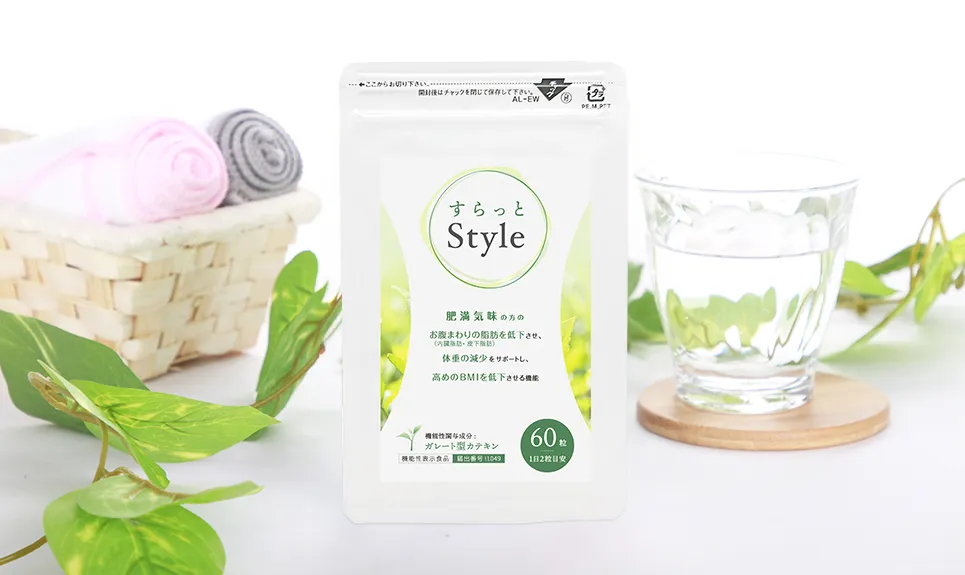 本品にはガレート型カテキンが含まれています。ガレート型カテキンには、肥満気味の方のおなかまわりの脂肪(内臓脂肪、皮下脂肪)を低下させ、体重の減少をサポートし、高めのBMIを低下させる機能があることが報告されています。